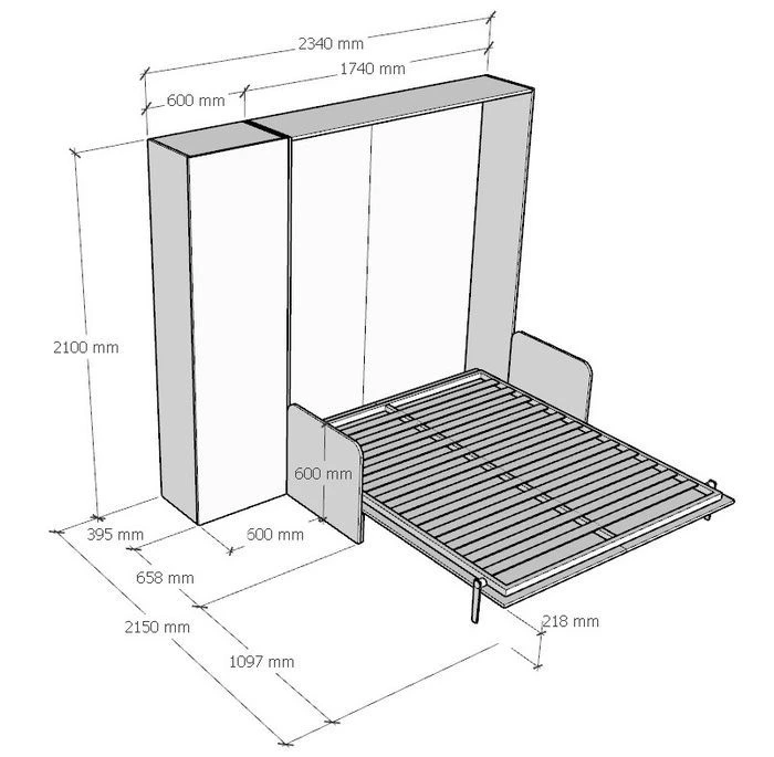 Dimensions total lit fermé : L 234 x P 105 x H 210 cm