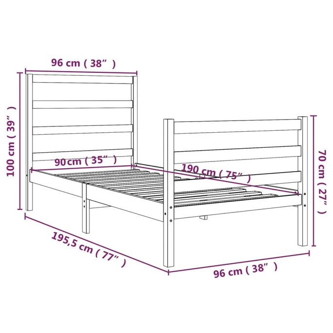 Taille de matelas appropriée : 90 x 190 cm (l x L) (matelas simple 3FT non inclus)