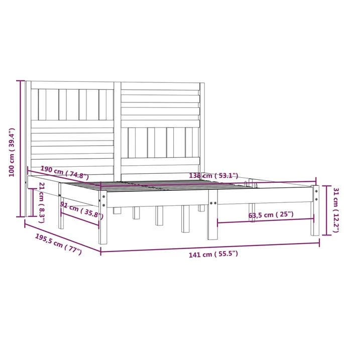 Dimensions totales du cadre de lit : 195,5 x 141 x 100 cm (L x l x H)