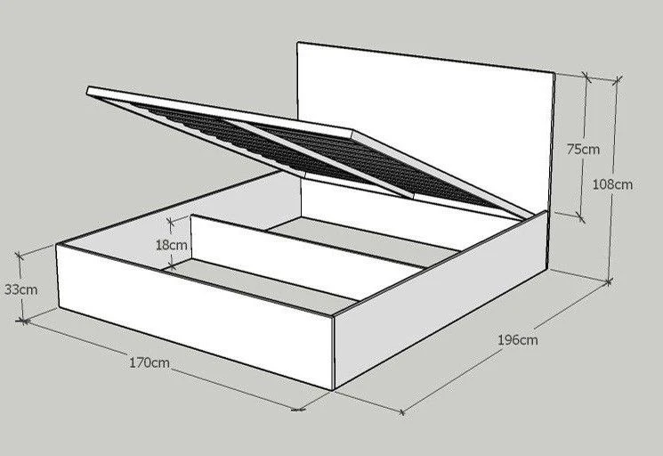 Couchage 160 x 190 cm – L 170 x H 43/108 x P 196 cm