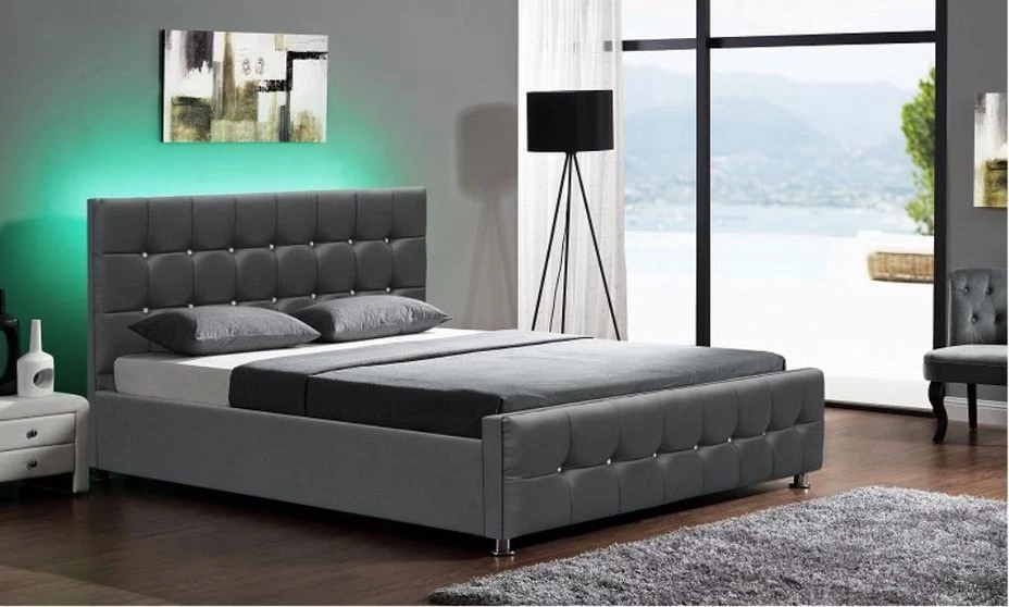 Revêtement intégral du cadre de lit en simili cuir gris P.U