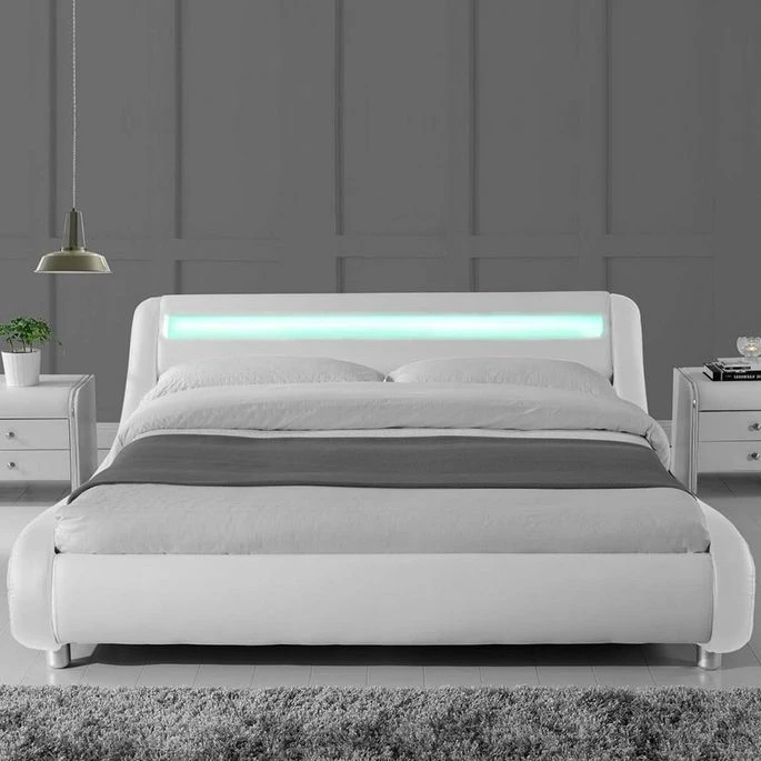Ce lit design à led intégré dispose d’une barre LED multicolore à votre convenance pour une ambiance décontractée.