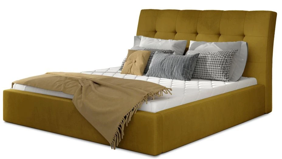 La disposition classique est renforcée par la décoration de bon goût de la tête de lit, dont les contours sont obtenus par le rembourrage doux et flexible en forme de mousse T25. Les pieds bas soutiennent le lit dans son style simple et élégant.