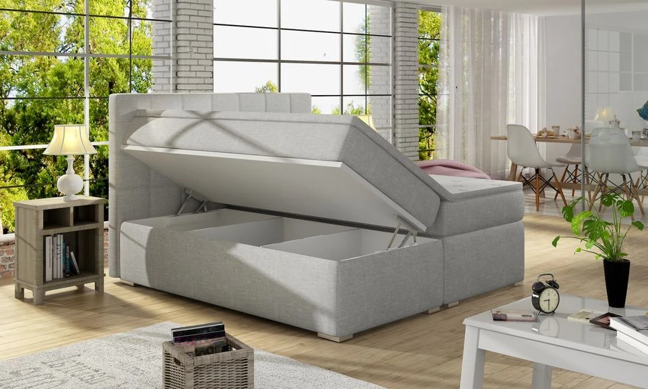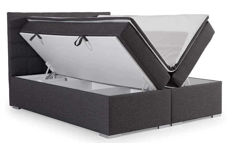 Ce lit continental avec toutes ses caractéristiques : un matelas grand et haut, une grande capacité de rangement pour le linge de lit et un cadre robuste fini avec un rembourrage moelleux. Le matelas est une construction à ressorts Bonnell de 20 cm d’épaisseur. Les couches de mousse T25 en haut et en bas ajoutent au niveau de confort avec un surmatelas en mousse T21 de 4 cm, dont le boîtier présente une bordure assortie au rembourrage. Cela améliore la qualité de votre sommeil tout en maintenant la colonne vertébrale dans sa bonne position et votre santé en assurant un bon soutien global de votre corps.