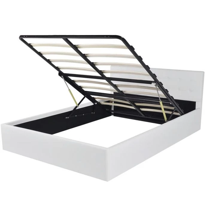 Le mĂ©canisme d’ascenseur hydraulique permet de lever le matelas facilement. Le sommier Ă lattes reste debout une fois levĂ© pour vous permettre pour enlever ou stocker des Ă©lĂ©ments ci-dessous.