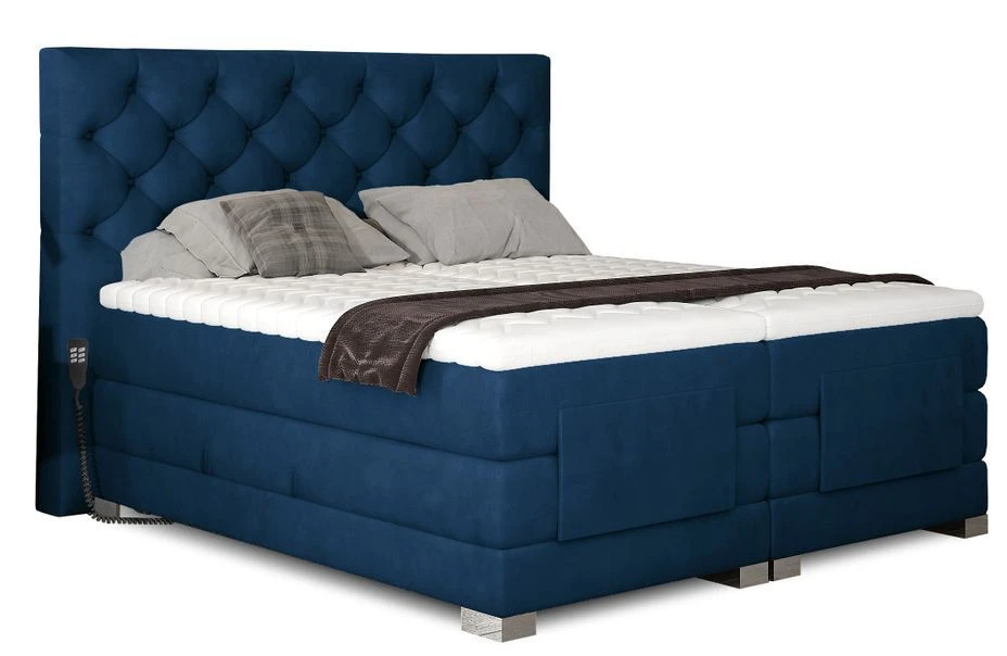 Le lit continental Karmen avec télécommande électrique est une nouvelle option pour tous ceux qui apprécient le confort au plus haut niveau. Le contrôleur vous permet d’ajuster la hauteur des matelas à vos besoins individuels. Le réglage de la hauteur de la tête et des pieds augmente le confort et la praticité de l’ensemble du lit.