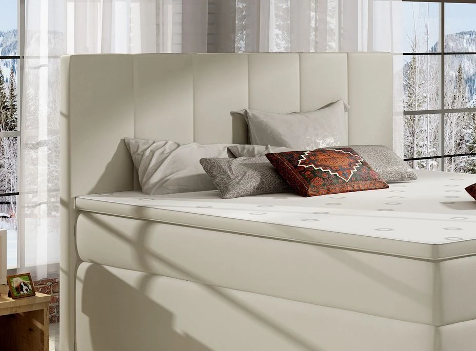 Un lit continental est synonyme de confort et de bonne nuit de sommeil. Pourquoi donc? En raison du matelas haut et des caractéristiques de confort haut de gamme. Celui ci est doté d’un matelas à ressorts Bonnell de 20 cm de haut avec des couches supérieure et inférieure de mousse T25 résiliente, d’une épaisseur totale de 4 cm. Le lit est livré avec un surmatelas de 4 cm en mousse T21. Cette configuration de matelas assure un sommeil de qualité optimale. Les matériaux rendent le lit incroyablement confortable, avec sa surface de couchage stable qui favorise directement un bon soutien pour le corps, et est sûr et sain pour la colonne vertébrale.