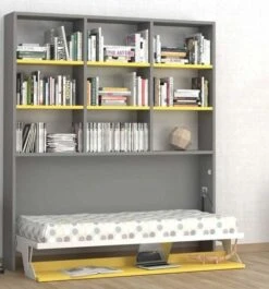 Lit Escamotable 90×180 Cm Avec Bureau Et Bibliothèque Spacio